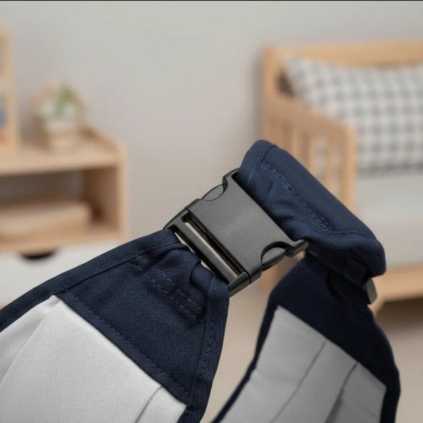 Fabricado en una combinación suave y resistente de algodón y poliéster, este portabebés es lavable, de secado rápido y pensado para el uso diario. Su diseño incluye hebilla ajustable y broche de seguridad, lo que garantiza un calce firme y adaptable al cuerpo del adulto.